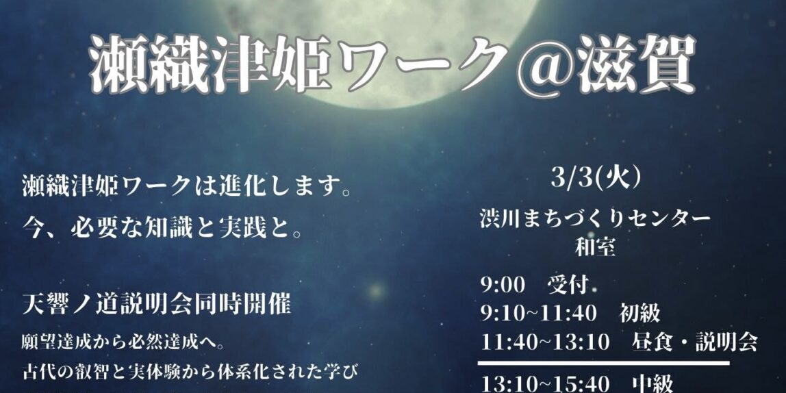 瀬織津ワーク@滋賀 🪐✨新たな情報開示でバージョンアップしていますので、過去に受講された方は再受講なさってください‼️今、このタイミングでもう一度‼️